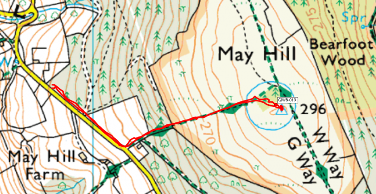 I decided to try May Hill from the road to the West. This is a narrow road but there is parking available for about four cars in a small lay-by at SO 688 213. It is a short walk up the hill to the small copse on the summit.